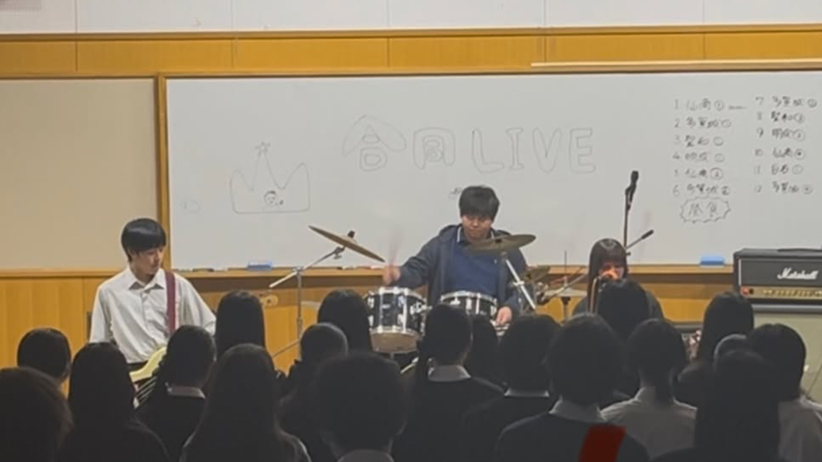 10月11日(土)仙台商業さんで多賀城高校さん、聖和学園三神峯さん、白石高校さんたちとの合同ライブに参加しました。明成高校からは、「アスタキサンニン」と「朧童幽霊」が参加しました。