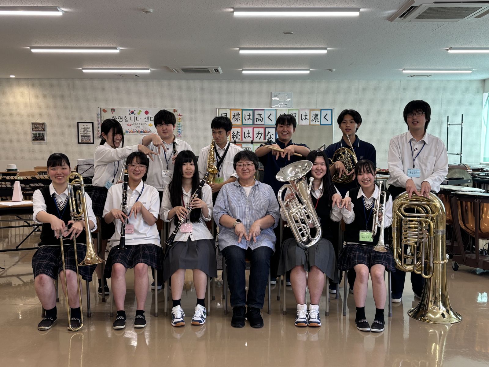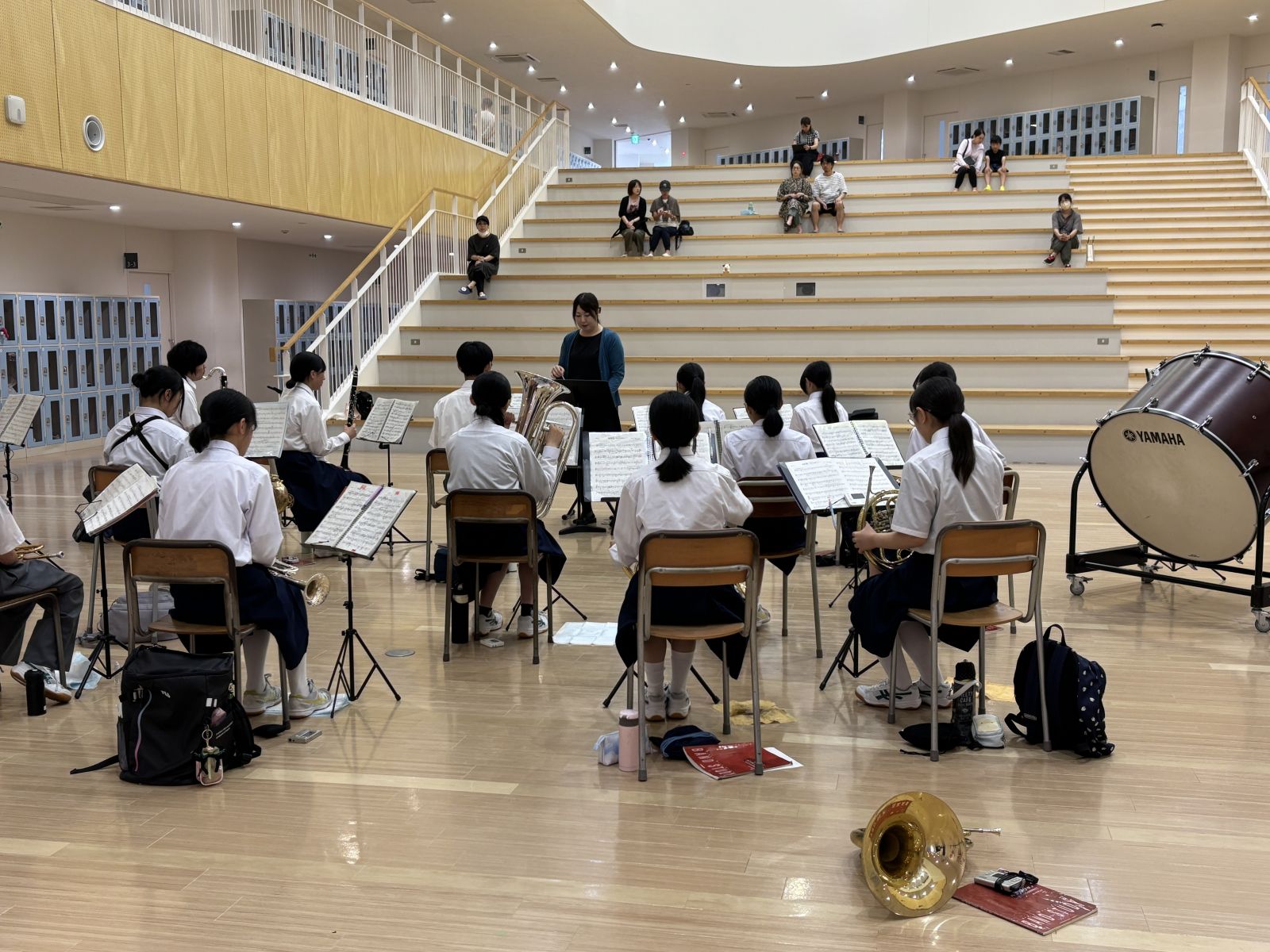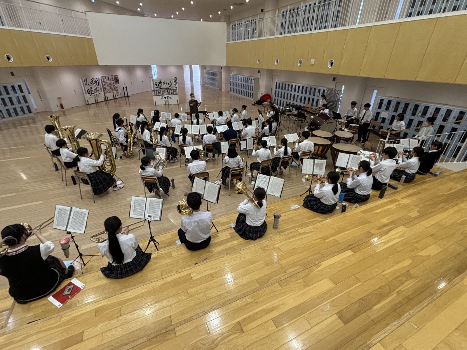 猛暑の夏休みが終わり、8/20(水)から授業が再開されました。夏休みを振り返ると、コンクール地区大会/県大会、学園祭や地域の夏祭りの打合せ・練習など充実した練習ができました。練習のほかにも、他校の皆さんが来校し、交流会なども開催しました。★桜丘中吹奏楽部と夏祭りに向けた合同練習会