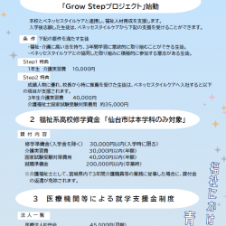 11月15日(土) 明成高校を会場に『FUKUSHI FESTIVAL 2025』を開催します! 介護福祉士を養成している「明成高校」と「仙台市老人福祉施設協議会仙台青葉東支部」が共同で企画・運営する初めてのイベントです! 「つながる心、広がる笑顔」をテーマに、世代を超えたつながりが持てるよう、様々な関連企業の体験ブース、飲食ブースも用意しています。 ...