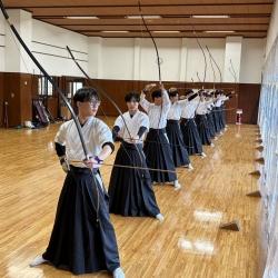 残暑お見舞い申し上げます。 猛暑・酷暑の日本列島、明成高校弓道部でもアツい!強化練習を実施しました。8日(金)は計百射を目標に、射込みを中心とした練習から始まりました。昼休みは「弓道」「そば道」の二刀流を目指す仲村部長の指導で、そば打ちに挑戦して手打ち蕎麦を食べました。顧問の柏葉先生の用意してくださった水ようかんも、格別のおいしさです。午後もしっかり各自の...