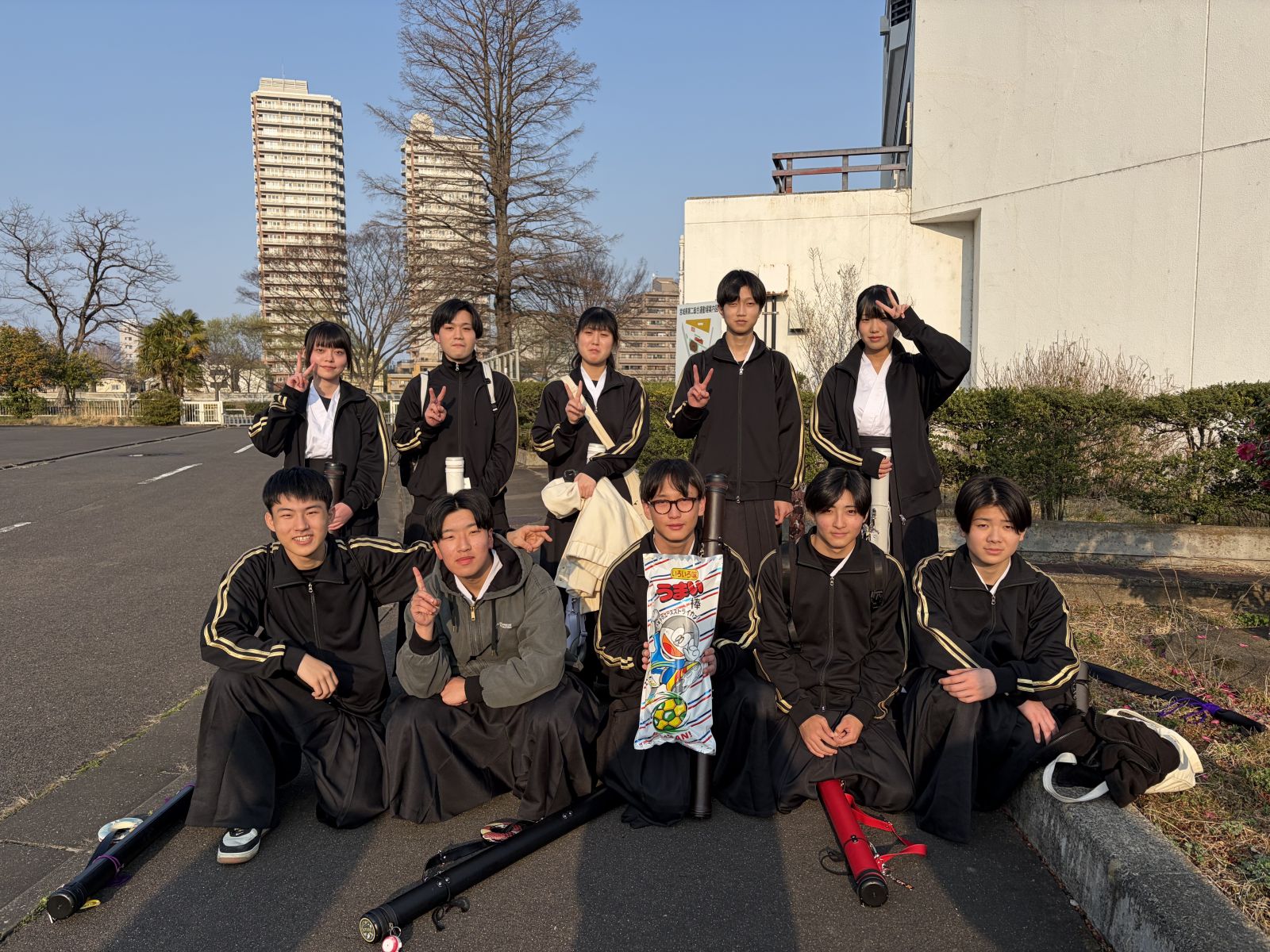 令和8年3月29日(日)宮城県武道館5階弓道場で開催された宮城県私立学校合同練成会に参加させていただきました。主催は聖和学園高校弓道部さんで、県内8校の私学が集いました。午前中は学年別個人戦、午後は学校対抗戦があり、練習の成果を確認できる良い機会となりました。男子は学校対抗戦を勝ち抜いて見事1位!に輝きました。男女混合チームは敗者トーナメントで決勝まで進み、大健闘でした。記念撮影では「頑張った~!!」という笑顔が溢れています。このような機会をいただいて、本当に感謝、感謝です。聖和学園高校弓道部さんをはじめ、参加した他校弓道部の皆様、ありがとうございました。