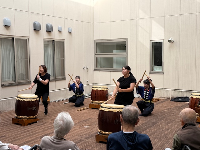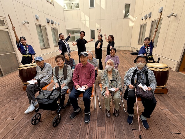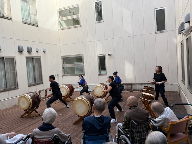 9月24日(水)、本校近隣の特別養護老人ホーム「せんじゅ」にて、敬老会ボランティアへ参加しました。当日は3名の卒業生にもお手伝い頂き、迫力ある演奏ができました。さすがは先輩、ブランクを感じさせない勇姿に、観てくれた施設の皆さんも大変喜んでくれました。アンコールの声もかかり、楽しいひとときを過ごすことができました。施設の皆さん、先輩方、本当にありがとうございました。