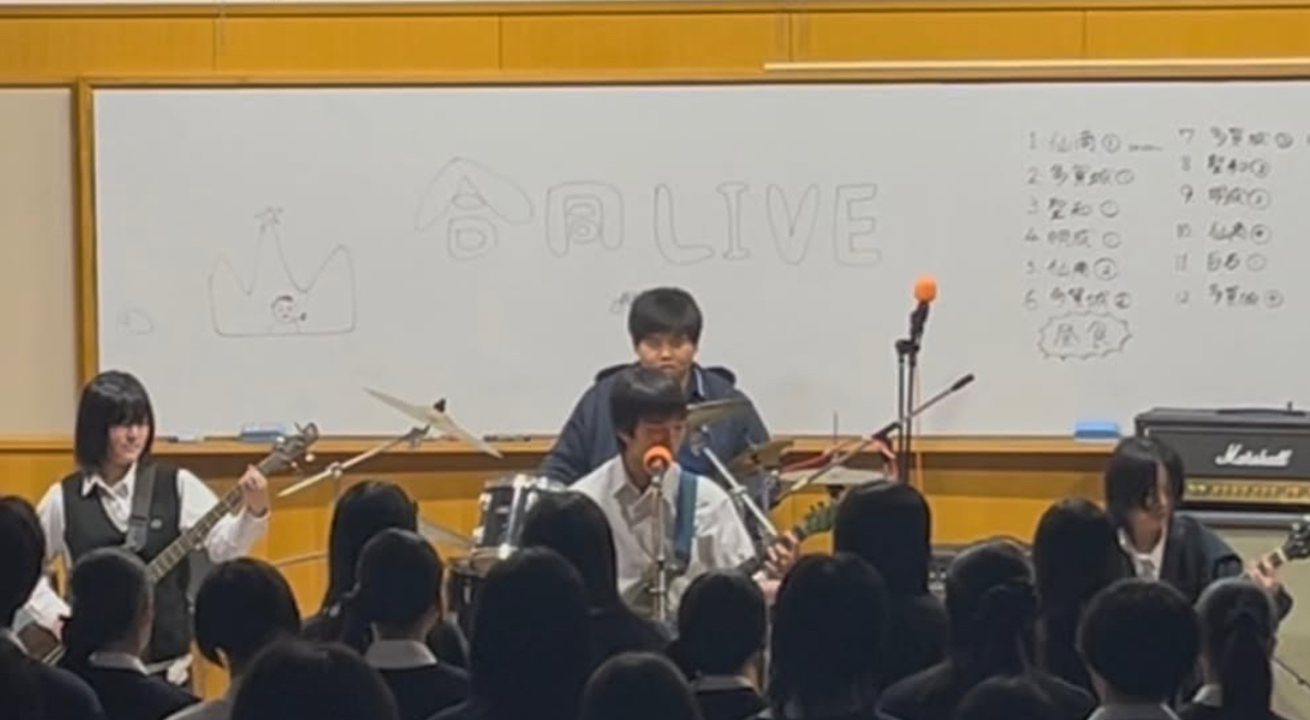 10月11日(土)仙台商業さんで多賀城高校さん、聖和学園三神峯さん、白石高校さんたちとの合同ライブに参加しました。明成高校からは、「アスタキサンニン」と「朧童幽霊」が参加しました。